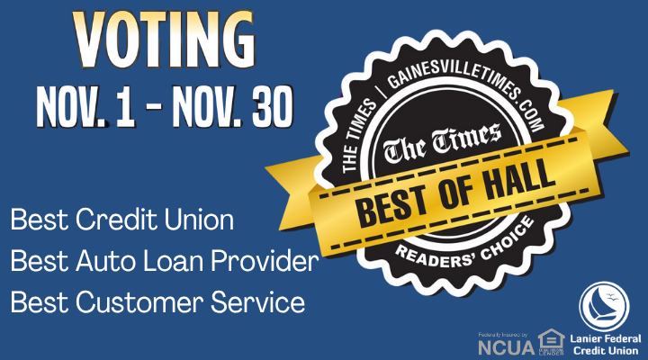 Voting for Best of Hall 2026 is open! LFCU is honored to have been nominated in 3 categories again this year: Best Credit Union, Best Auto Loan Provider, and Best Customer Service. We’d love to have your vote! 1 vote, per person, per day in each category is permitted. Vote now!
