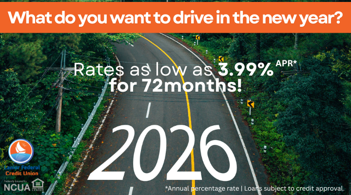 Drive into the new year in a new (or new-to-you) car! We offer low-rate auto loans that can help make that car you’ve been eyeing yours. Learn more and apply!